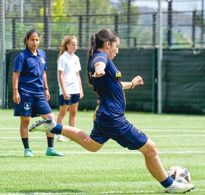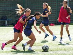Durante su entrenamiento, las chicas trabajan su técnica (pases, regates, tiros y control del balón) y su inteligencia de juego (percepción espacial, conocimiento táctico y evaluación de riesgos).