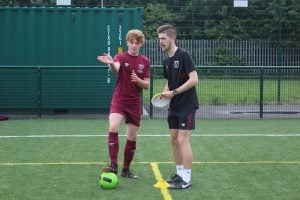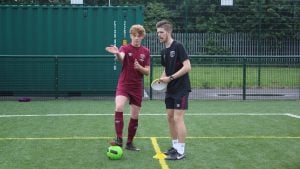 Les élèves s’entraînent avec le kit d’entraînement de la West Ham United Foundation qui leur est remis à leur arrivée au camp.